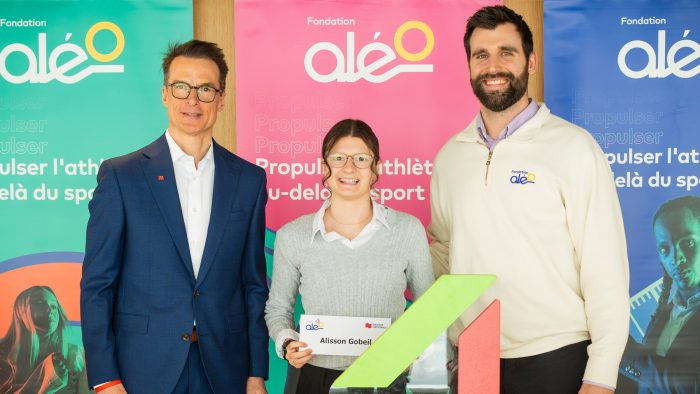 Alisson Gobeil, étudiante-athlète en Sciences humaines au Cégep de Rosemont, est parmi les récipiendaires du Programme Fondation Aléo et Banque Nationale, qui a remis 100 000 $ en bourses et en services à 21 athlètes cette année. Elle a reçu une bourse de 4000 $ pour sa discipline et sa persévérance en paranatation!